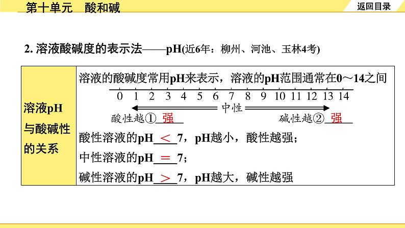 2. 溶液酸碱度的表示法——pH(近6年:柳州、河池、玉林4考)