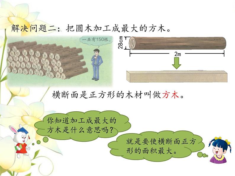 分析:①圆木的长是2米,截断面是直径为28cm的圆。