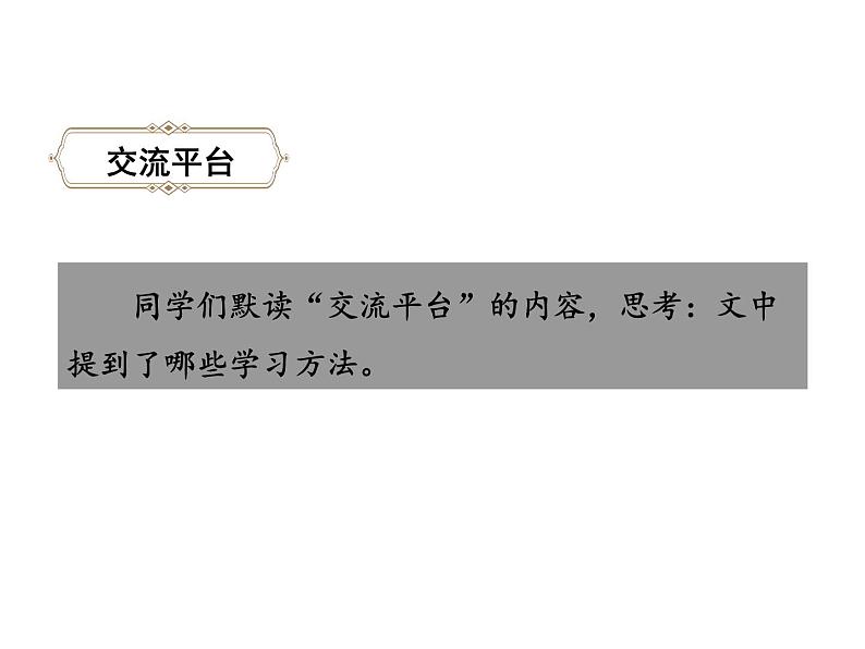 同学们默读“交流平台”的内容,思考:文中提到了哪些学习方法。