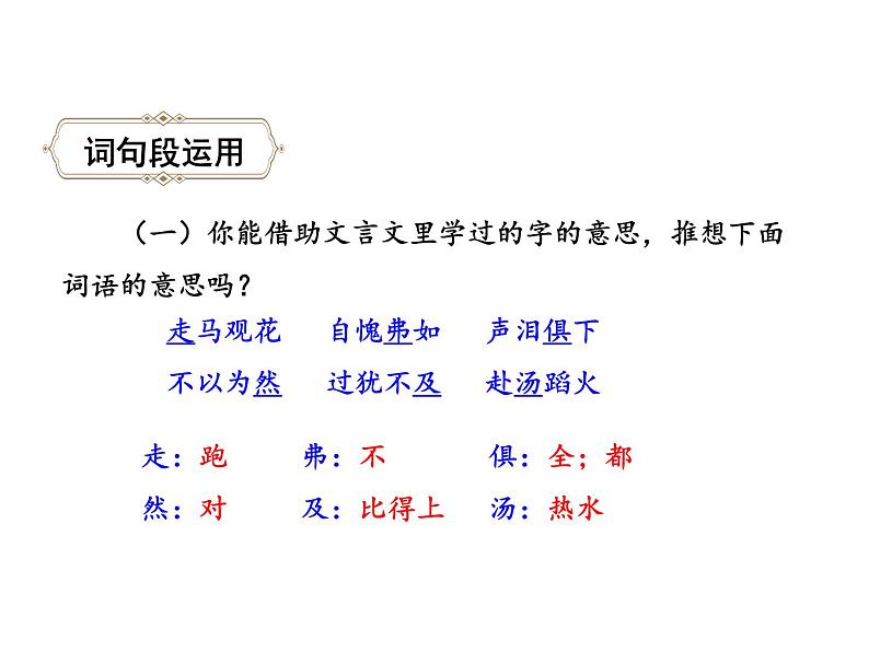 (一)你能借助文言文里学过的字的意思,推想下面词语的意思吗?