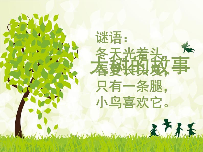 谜语:冬天光着头,春夏长头发,只有一条腿,小鸟喜欢它。