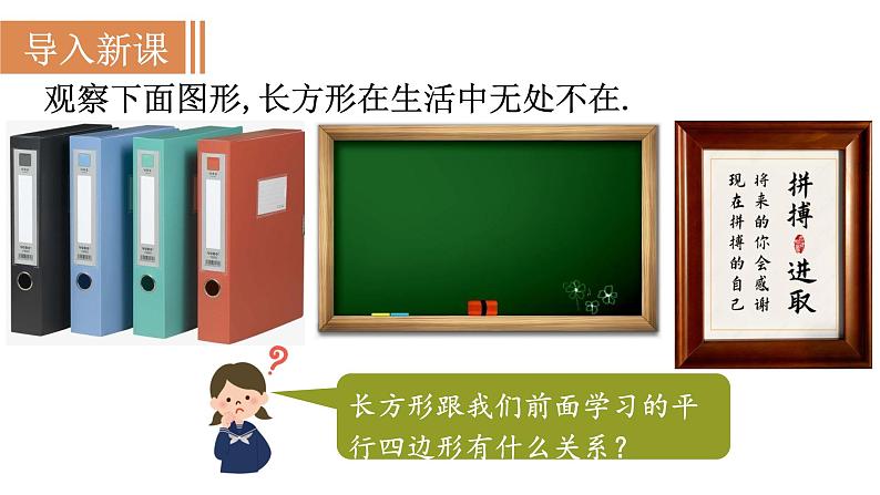 矩形是常见的图形,门窗框、书桌面、教科书封面、地砖等都有矩形的形象。