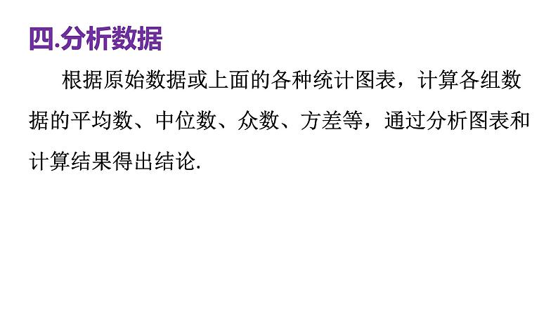 分析数据一般要计算各组数据的平均数、中位数、众数与方差等,通过分析图表和计算结果得出结论