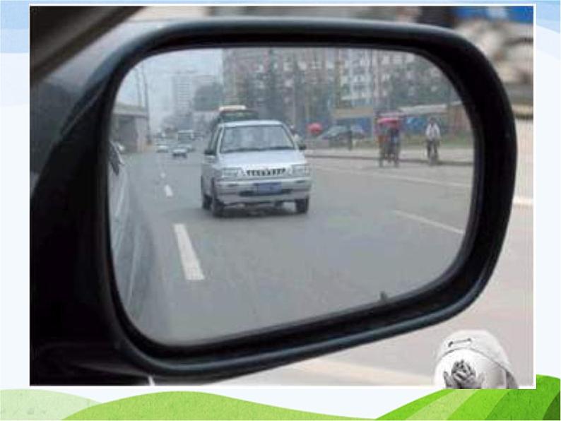 凸面镜:散光,成放大的正像, 成像范围广。