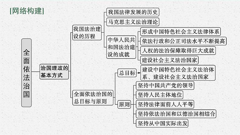 展开新高考政治二轮复习精品课件专题七全面依法治国(含解析): 这是一份新高考政治二轮复习精品课件专题七全面依法治国(含解析),共60页。PPT课件主要包含了考情考向分析,思维体系构建,全面依法治国,知识整合突破,考向一,法的特点和职能,考向二,突破提升人治和法治,考向三,易混易错辨析等内容,欢迎下载使用。