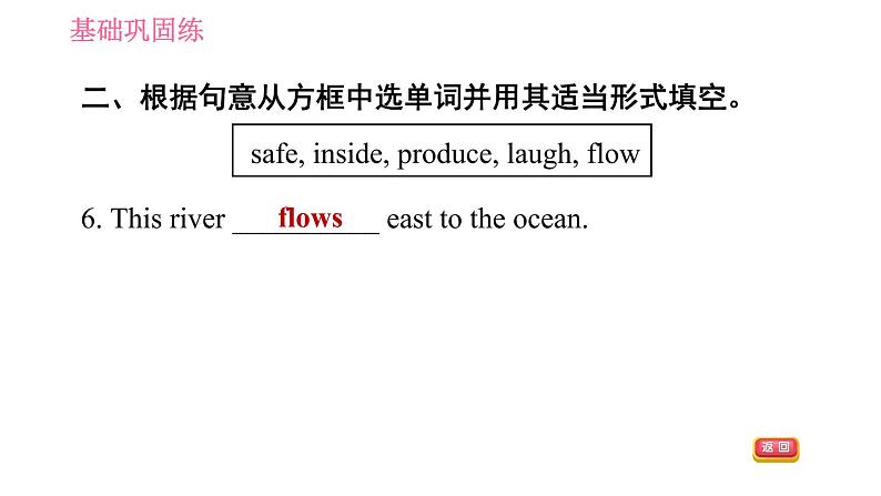 二、根据句意从方框中选单词并用其适当形式填空。6. This river __________ east t the cean.