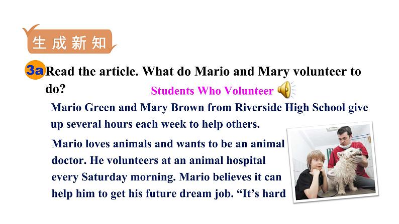 Mari lves animals and wants t be an animal dctr. He vlunteers at an animal hspital every Saturday mrning. Mari believes it can help him t get his future dream jb. “It’s hard