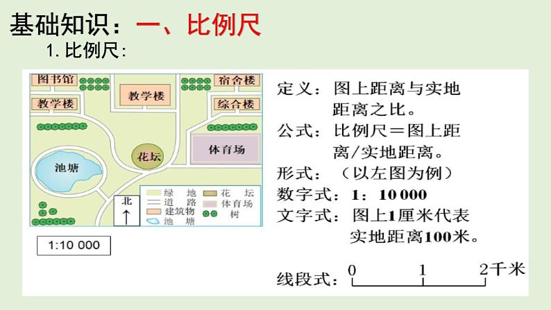 基础知识:一、比例尺 2.比例尺大小与范围、内容详略的关系: