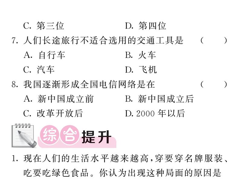 展开人教部编版八年级下册第19课 社会生活的变迁公开课ppt课件: 这是一份人教部编版八年级下册<a href="/ls/tb_c139164_t3/?tag_id=26" target="_blank">第19课 社会生活的变迁公开课ppt课件</a>,共28页。PPT课件主要包含了世纪90年代,新时代,日常生活的变化,交通通信的不断发展等内容,欢迎下载使用。