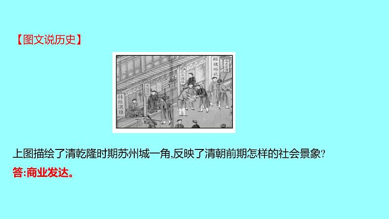 【图文说历史】上图描绘了清乾隆时期苏州城一角,反映了清朝前期怎样的社会景象?答:商业发达。