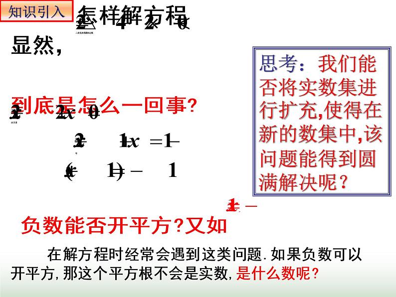 思考:我们能否将实数集进行扩充,使得在新的数集中,该问题能得到圆满解决呢?