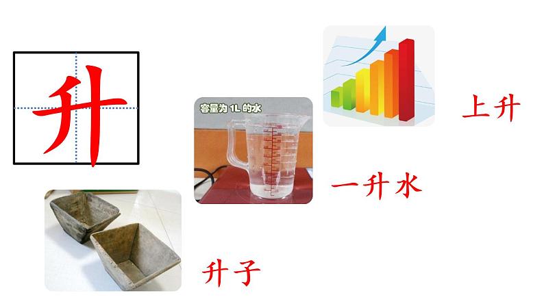 1.认识了“升、国”等生字,能够书写“中、五”等字。2.通过将同一现象或相关事物汇聚在一起,来认识更多的汉字。