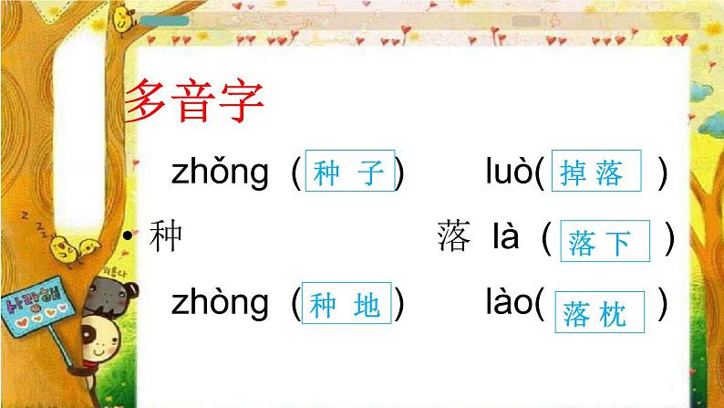 多音字 zhǒng ( ) luò( )种 落 là ( ) zhòng ( ) là( )