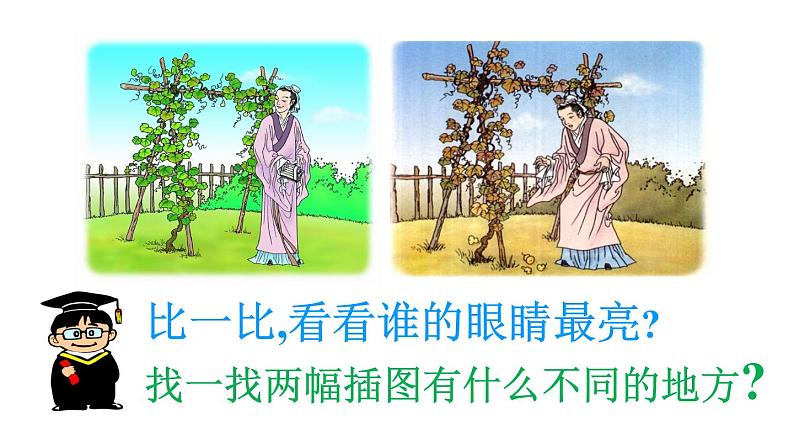 比一比,看看谁的眼睛最亮?找一找两幅插图有什么不同的地方?