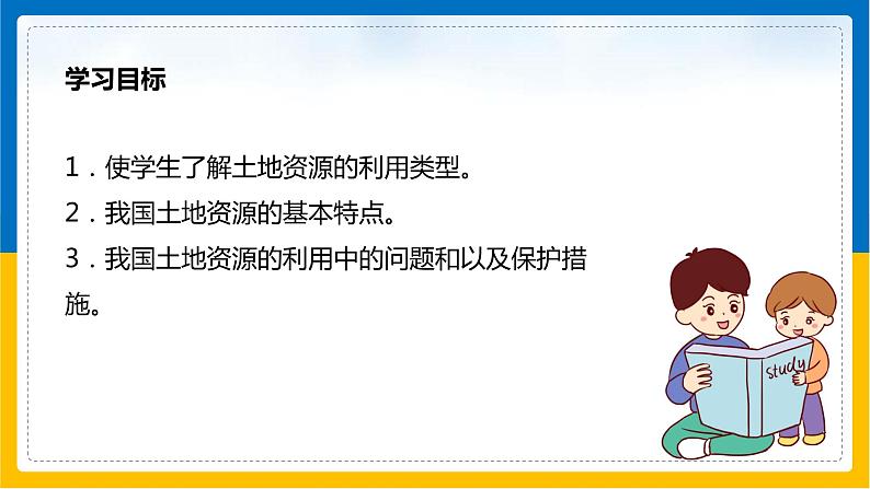 学习目标 1.使学生了解土地资源的利用类型。2.我国土地资源的基本特点。3.我国土地资源的利用中的问题和以及保护措施。