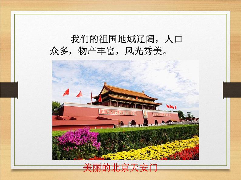 我们的祖国地域辽阔,人口众多,物产丰富,风光秀美。
