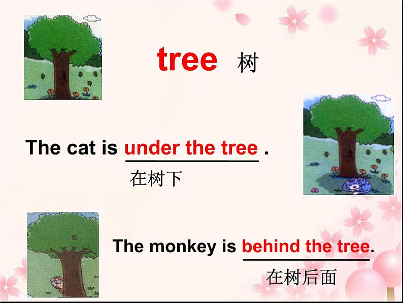 in n under behind in 在 “里”under under在 “下面”behind behind在 “后面”