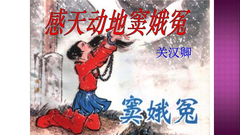 这是一份高中语文人教统编版必修 下册4 窦娥冤(节选)图片课件ppt,共33页。PPT课件主要包含了元杂剧,词媚曲俚俗,作者简介,课本分析,剧情简介,贞节守妇道,贞洁孝顺,三岁丧母,被诬陷毒杀了公公,屈打成招等内容,欢迎下载使用。
