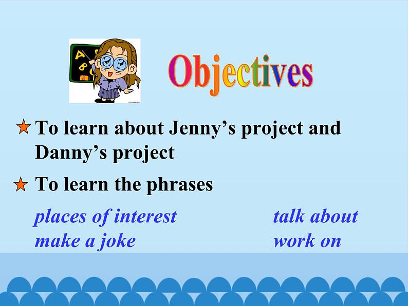 T learn abut Jenny’s prject and Danny’s prject T learn the phrasesplaces f interest talk abut make a jke wrk n