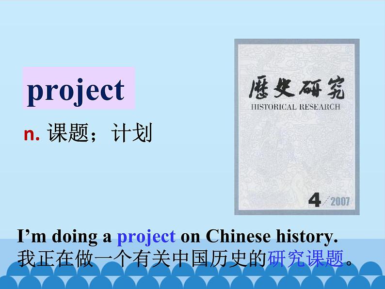 1. prject a part f a schl curse that invlves careful study f a particular subject ver a perid f time 课题In ur third year everyne des a special prject. 第三学年,我们每个人都必须做一个特别的课题。