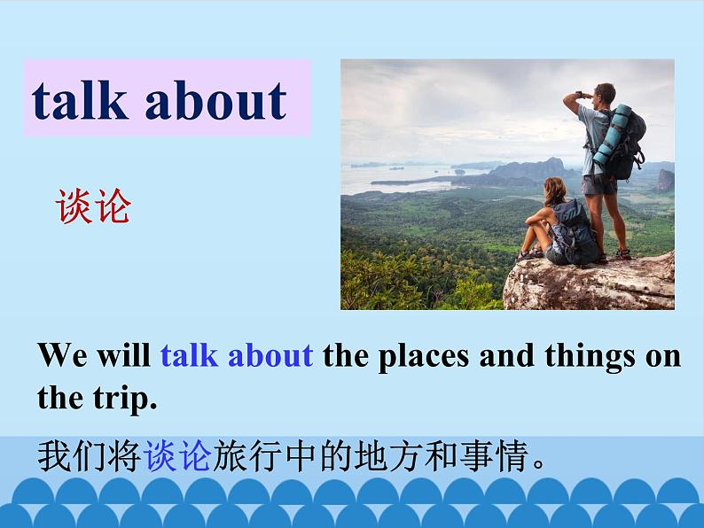 3. talk abut 谈论I can’t talk abut this t Sam.这些话我不能对山姆说。We had plenty t talk abut.我们有说不完的话。