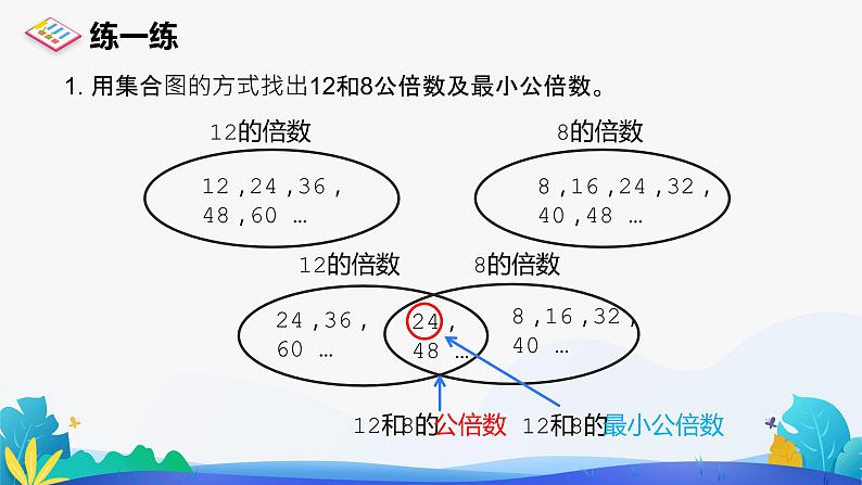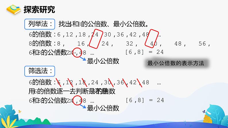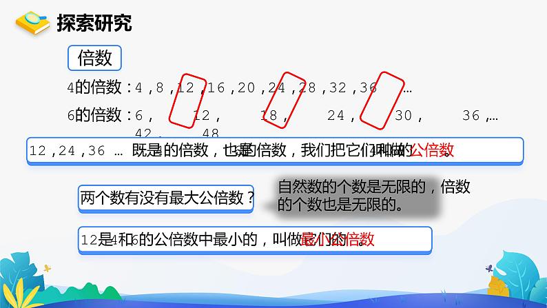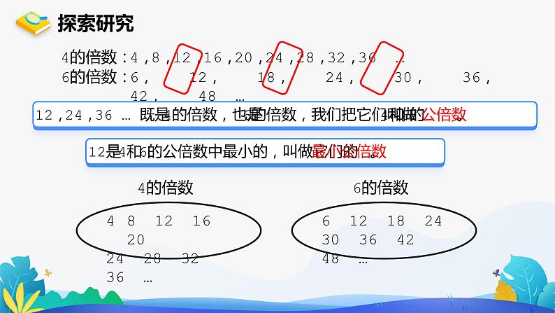 这是一份人教版五年级下册最小公倍数课前预习ppt课件
