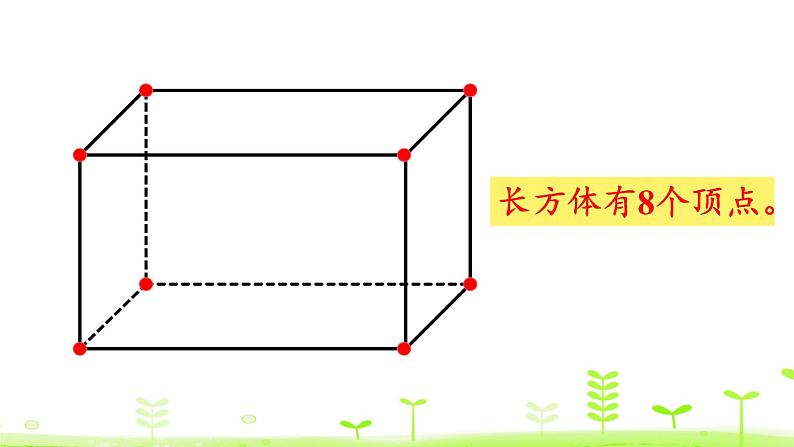 相交于一个顶点的三条棱的长度分别叫做长方体的长、宽、高。长方体的 12 条棱中有 4 条长、4 条宽和 4 条高,它们的长度分别相等。