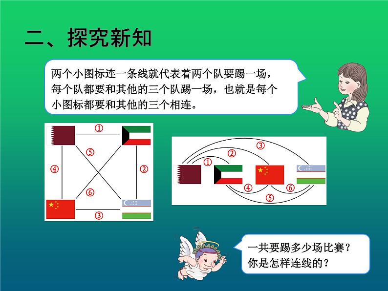 这是一份人教版三年级下册数学广角——搭配(二)课文配套课件ppt,共17页。PPT课件主要包含了情境导入,探究新知,卡塔尔,科威特,乌兹别克斯坦,知识运用,方法一,方法二,方法三,方法四等内容,欢迎下载使用。