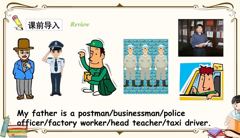 My father is a pstman/businessman/plice fficer/factry wrker/head teacher/taxi driver.