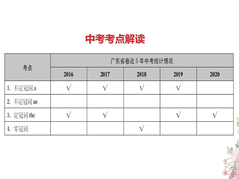 这是一份人教版中考英语复习语法专题突破三冠词课件,共20页。