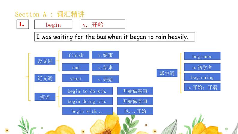 展开begin v.________ 过去式:_________ 过去分词: __________ 近义词:__________