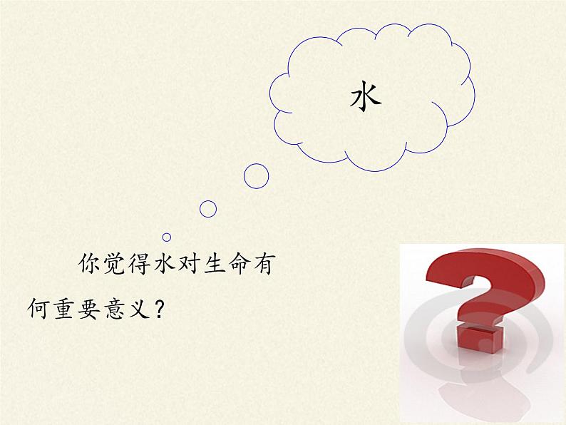 地球表面约3/4的部分是水;我们的胚胎发育离不开水。一个人在极限状况下,可坚持20天以上不进食。一个人不喝水,1天后就会丧失意识,生命濒临终点