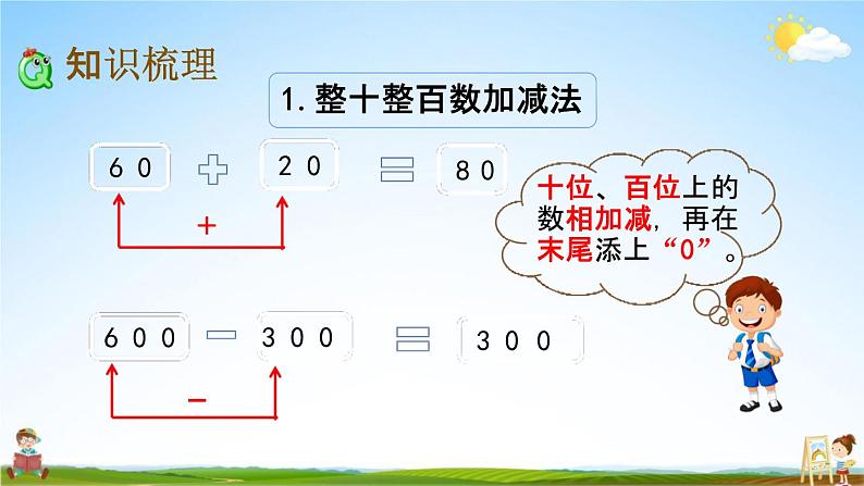 十位、百位上的 数相加减,再在 末尾添上“0”。