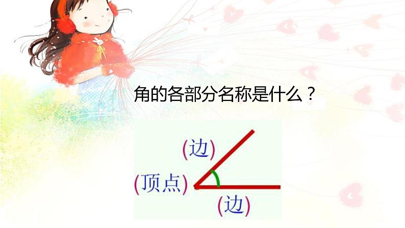 这是一份2021学年3 角的初步认识图文ppt课件,共39页。PPT课件主要包含了找一找图中的角,角的组成,欢迎来到角的乐园,判断角的儿歌,红角与蓝角大小之争,美丽校园中的角等内容,欢迎下载使用。