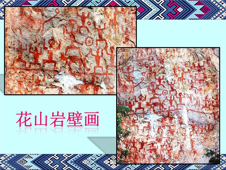 这是一份美术六年级下册第16课 装饰壁画授课课件ppt,共39页。PPT课件主要包含了花山岩壁画,画像型图案,壮族铜鼓,对比色,几何型图案,设计步骤,作品欣赏,作品评价,课外拓展等内容,欢迎下载使用。