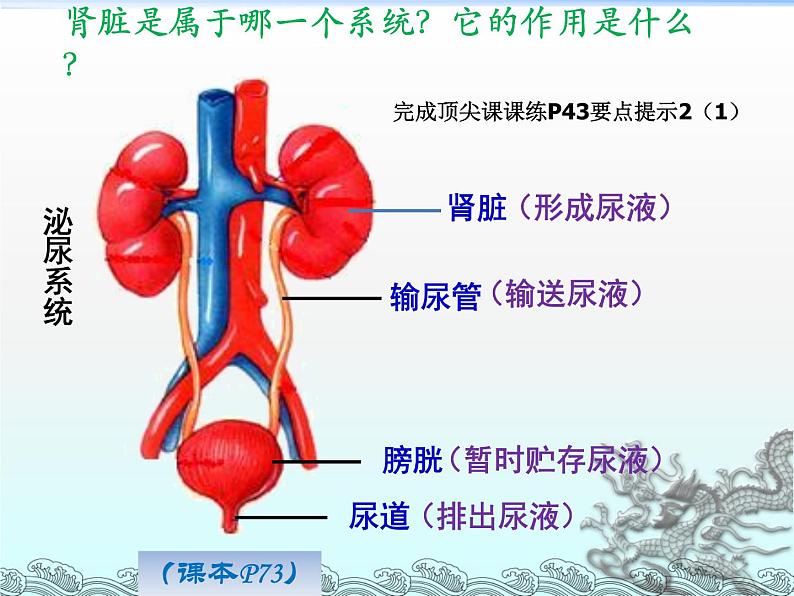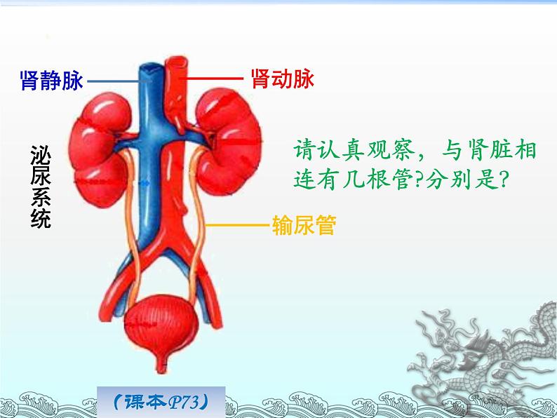 注意观察标注肾动脉和肾静脉的颜色,血液颜色为何发生改变?