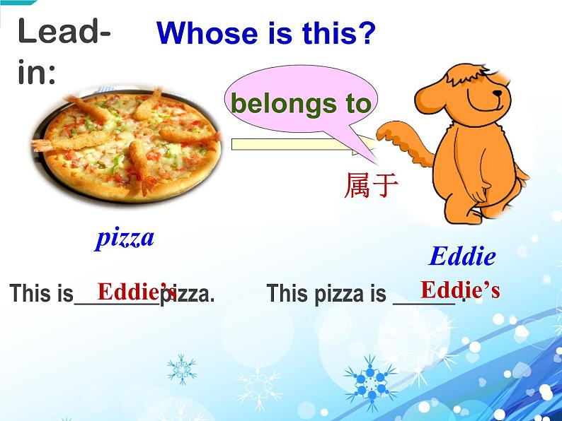 3. We ften use ’s with names. 我们常常将’s和姓名连用 eg: Neil ’s mther is calling him frm the UK.Checking: 用所给单词适当形式填空 The gift is____________(Charles)