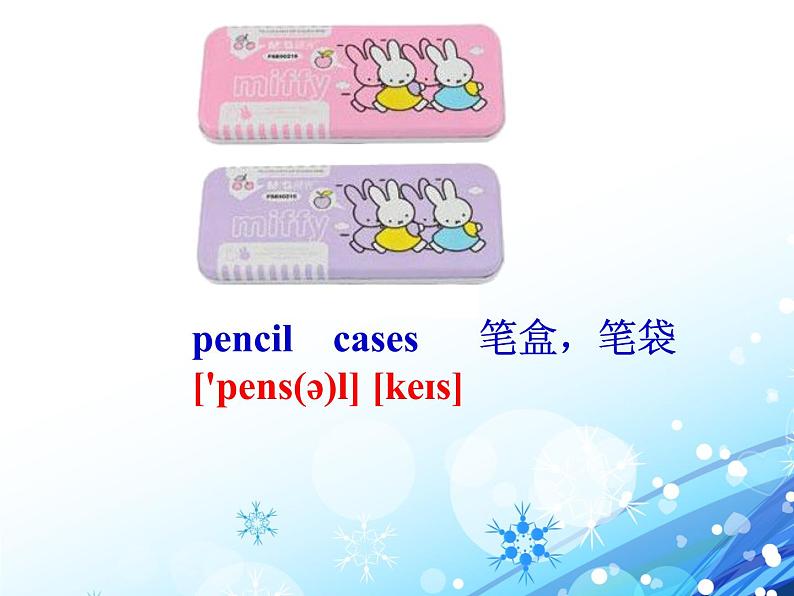 pencil cases 笔盒,笔袋['pens(ə)l] [keɪs]
