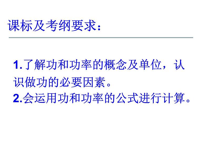 1.了解功和功率的概念及单位,认识做功的必要因素。2.会运用功和功率的公式进行计算。