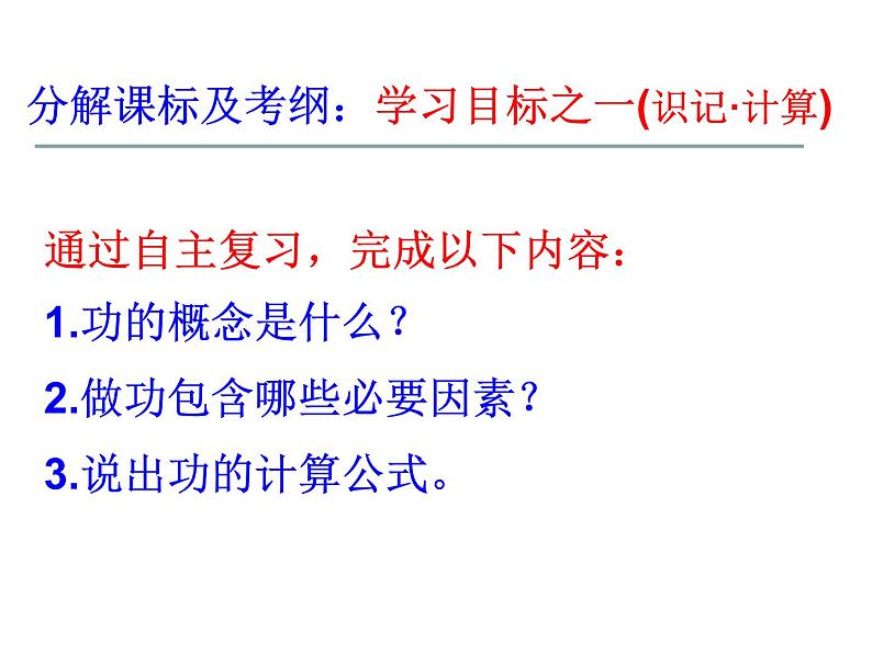 通过自主复习,完成以下内容:1.功的概念是什么?2.做功包含哪些必要因素?3.说出功的计算公式。