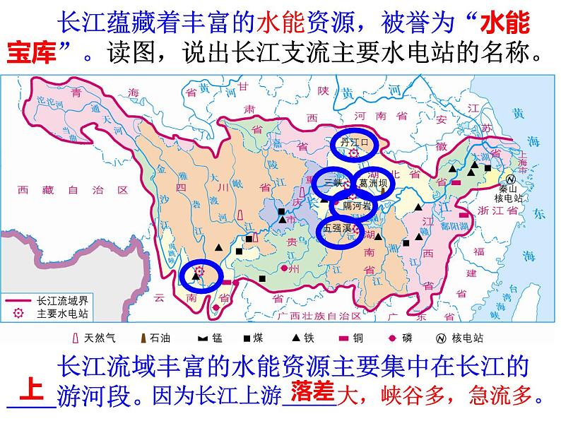 长江蕴藏着丰富的水能资源,被誉为“水能宝库”。读图,说出长江支流主要水电站的名称。