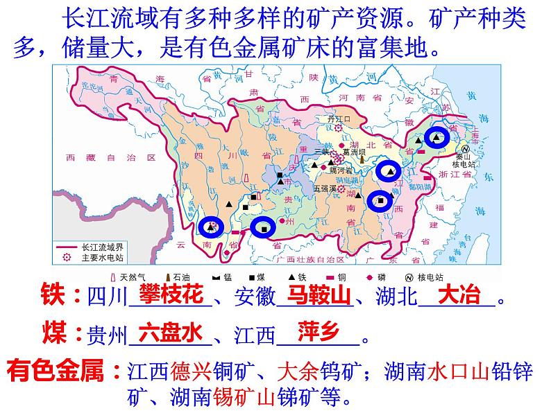 长江流域有多种多样的矿产资源。矿产种类多,储量大,是有色金属矿床的富集地。