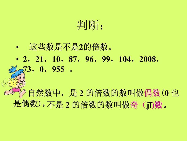 自然数中,是 2 的倍数的数叫做偶数(0 也 是偶数),