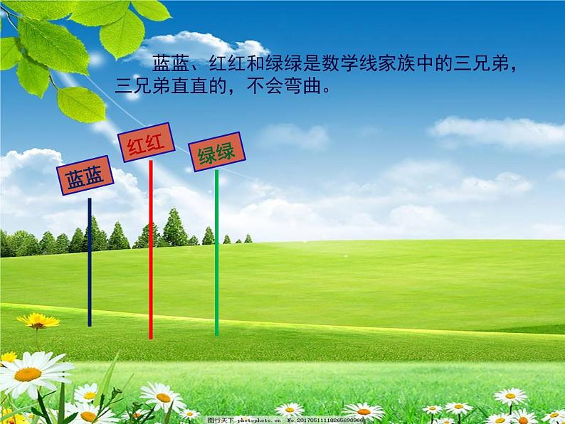 展开蓝蓝、红红和绿绿是数学线家族中的三兄弟,三兄弟直直的,不会弯曲。