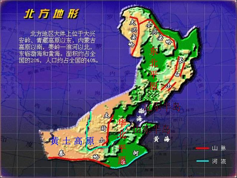 展开第六章 北方地区第一节 区域特征位置与范围读图6-1-21.找出北方地区主要的行政区域,说出它们的省级行政中心。黑龙江—哈尔滨; 吉林—长春;辽 宁—沈 阳; 陕西—西安;山 西—太 原; 河 南—郑州;山 东—济 南; 河北—石家庄;北京;天津。东 北 平 原华 北 平 原黄 土 高 原山东半岛辽东半岛分区中国地理分区图北方大地 四季分明高原垂直气候带寒温带中温带暖温带亚热带热带中国温度带图寒温带湿润区半湿润区半干旱区农业生产与气候差异工业区与工业城市环渤海经济区辽中南工业区京津唐工业区P9 活动1.哈尔滨地处东北平原,济南地处华北平原。阅读两城市气温年变化曲线与各月降水柱状图,结合所学知识,比较华北平原和东北平原的地区差异。表6-1-1 华北平原与东北平原的区域差异暖温带中温带半湿润地区半湿润、湿润地区温带针阔混交林温带落叶阔叶林一年两熟至两年三熟一年一熟冬小麦、棉花、花生、玉米春小麦、甜菜、玉米、大豆北方地区位置大兴安岭,青藏高原以东, 地形:以高原、平原为主东部—东北平原、华北平原西部—黄土高原气候:温带季风气候冬季寒冷干燥,夏季高温多雨内蒙古高原以南,秦岭淮河以北。一、北方地区的自然环境食品:面食为主房屋:注意防寒、保暖;传统—火炕;现代—暖气;黄土高原—窑洞交通:传统—骡马;现代—铁路、公路体育项目:溜冰