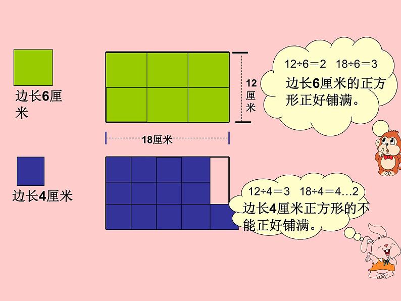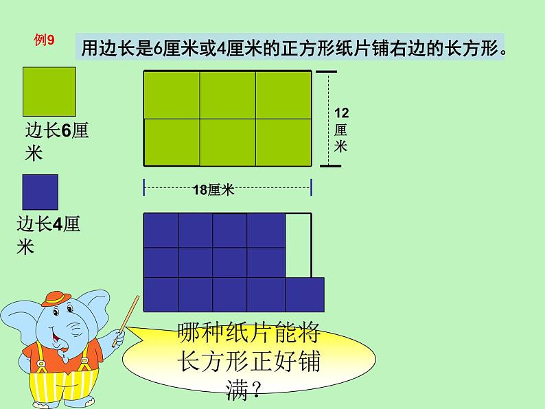 用边长是6厘米或4厘米的正方形纸片铺右边的长方形。