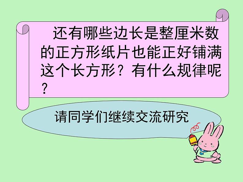还有哪些边长是整厘米数的正方形纸片也能正好铺满这个长方形?有什么规律呢?