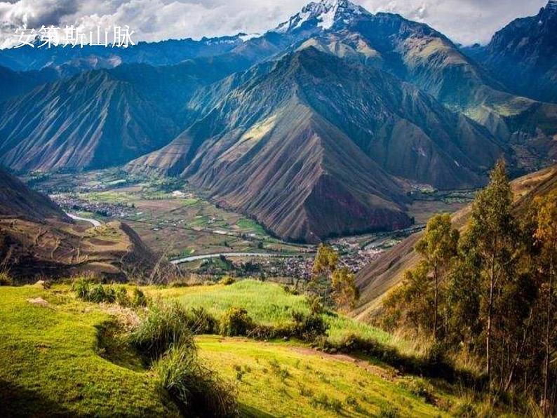 地形呈”F“字型分布,西部为高大的 山脉,这是世界上最 山脉;东部且高原、平原交错分布:由北向南依次的 高原、 平原、 高原、 平原 ;其中亚马孙平原是世界上最 的平原,巴西高原是世界上最 的高原。 地势特点: 高 低。