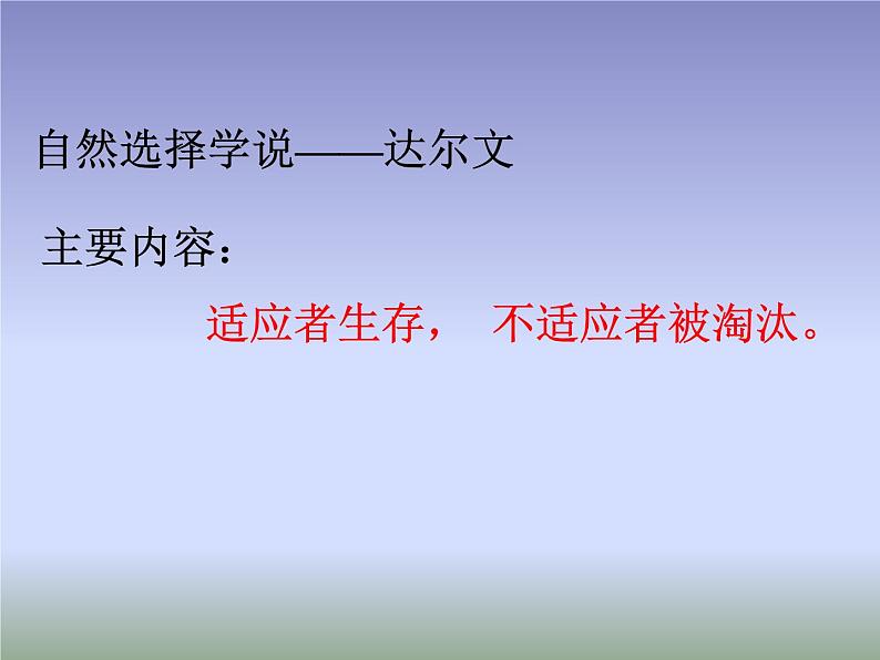 生存下来的都是对环境能适应的,被淘汰的生物都是对环境不适应的。