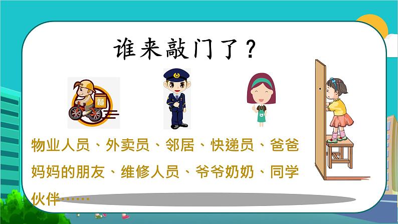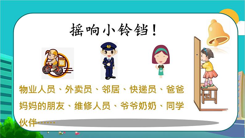 物业人员、外卖员、邻居、快递员、爸爸妈妈的朋友、维修人员、爷爷奶奶、同学伙伴……